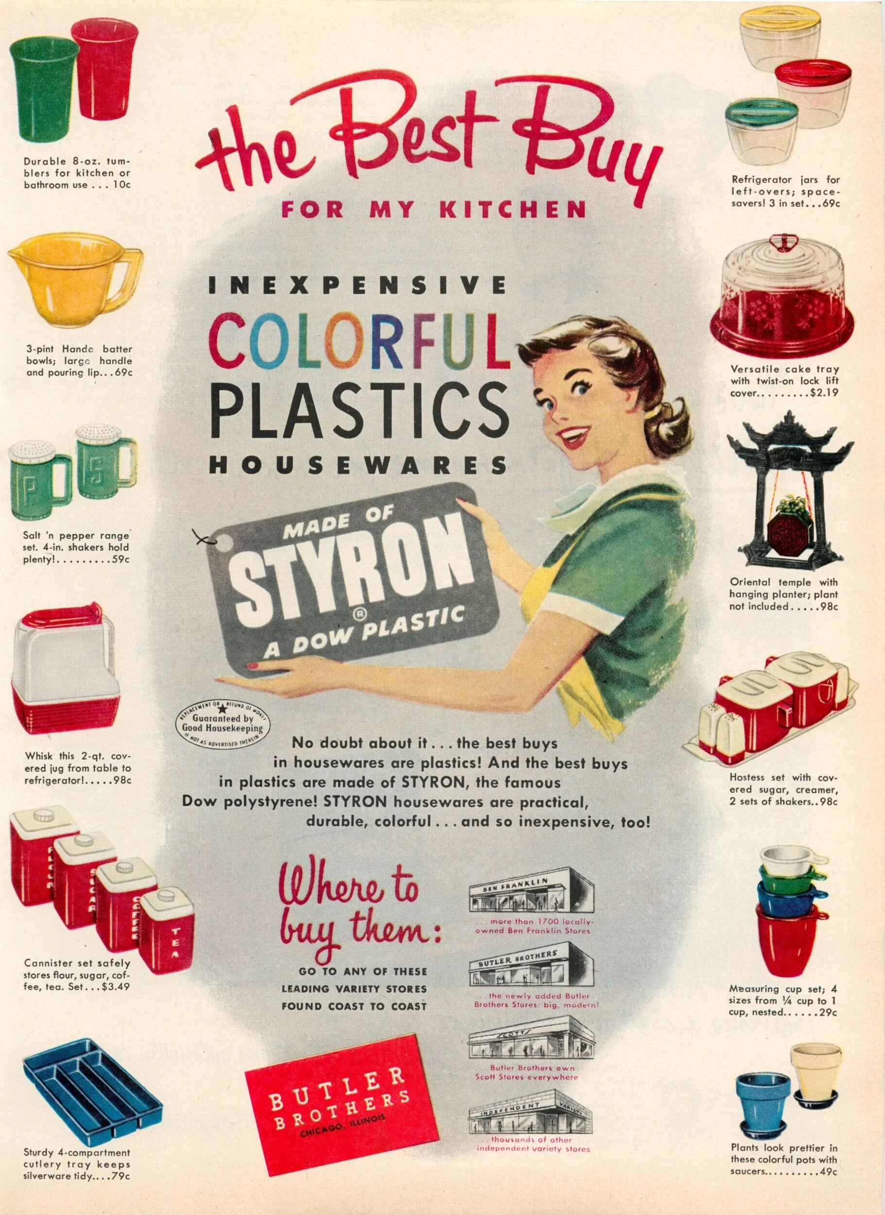 In post-war America, people were ready to live large. Plastic offered the possibility of a material utopia in which anyone could have anything, thanks to the cheap, sturdy, sanitary substance that could be molded into anything. And since the war was over, there was so much of it. Plastic manufacturers turned their attention to the production of consumer goods with all of the materials they’d developed during the war, fulfilling peoples’ desires for all the comforts of modern life that the material finally afforded to them. Housewives were urged to swap out their reusable tableware for single-use plastic alternatives. No dishes meant more time with their husbands and kids in those precious after-dinner hours. In this way, disposable plastic tableware was seen as a great source of female empowerment. Take back your time by throwing it away (or leaving it behind)! Fewer dishes means more time for YOU!